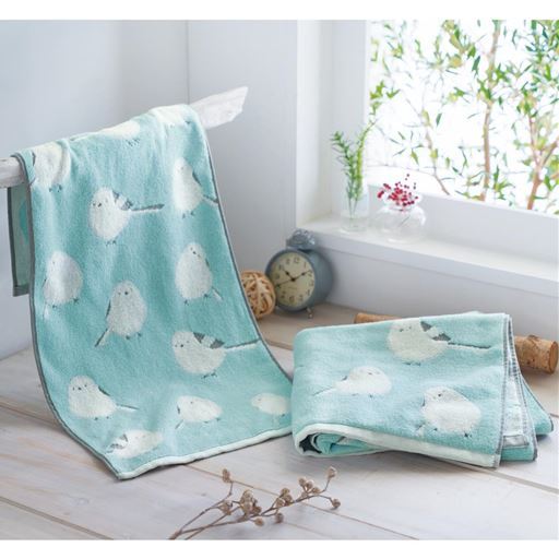 シマエナガのジャカード織タオル(無撚糸)