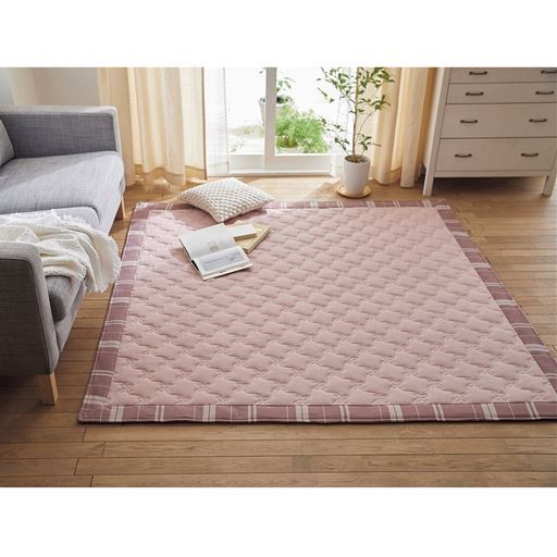 しじら織キルトラグ(綿100%さらっとした肌触り) 汚れても洗濯機で丸洗いOK ズレを防ぐ裏すべり止め付き