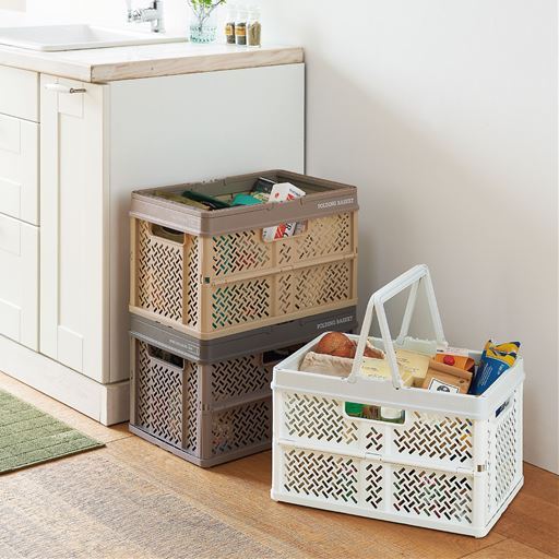 折りたたみバスケット(ハンドル付き)2個組