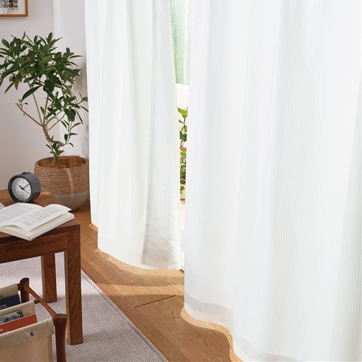 部屋を明るくする遮熱ボイルレースカーテン(UV約99%)