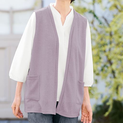 体型カバーできる透かし編みベスト